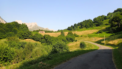 La subida hasta el Refugio de la Espata es toda por pista suave, aunque sin mucho descanso, después de este tramo empieza un porteo de unos 500m+ hasta la cima. Luego toca disfrutar de un maravilloso descenso hasta el mismo pueblo de Villanúa. El descenso tiene tramos bien diferentes, la parte de arriba un precioso camino por el lomo entre hierba bacheada, pero que por la traza se hace muy bien, luego viene un tramo de sendero limpio entre bosque sin curvas muy rápido, después un tramo de numerosas curvas cerradas, pero por sendero bueno, y finalmente una trialera que porteé entera hasta casi el pueblo de Villanúa donde el sendero se vuelve mucho más sencillo y ya pude subirme otra vez a la bici.