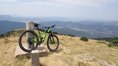 Desde el pueblo se coge una pista en buen estado que sube hasta el Refugio de la Espata, buen lugar para parar a descansar a la sombra antes del porteo. A partir de ahí coger el sendero que sube a la Espata, yo lo porteé entero, porque aunque haya tramos que se puede pedalear casi me cansa más subir y bajar todo el rato. Este camino te deja en un llano donde hay que ir girando a la derecha para subir por amplias palas un poco campo a través hasta un collado. Desde el collado, girar a la derecha y subir por el lomo hasta la misma cima del Bacún Norte. A partir de aquí se acabó el porteo y bajar por el lomo hacia el Bacún Sur por un camino precioso para la bici por el impresionante paisaje. Desde el Bacún Sur hay un tramo muy malo de baches hasta un poco más abajo desde donde ya la senda es muy buena. Se baja prácticamente en línea recta por el bosque hasta la Punta de la Selva. A partir de aquí numerosas zetas por sendero estrecho sin mucha inclinación terminan en un sendero mucho más técnico y trialero que me hizo caminar un buen rato. Después de este tramo ya el final es más sencillo y disfrutón hasta el mismo pueblo.