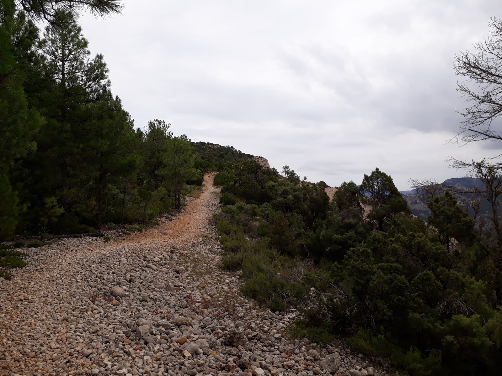 Para bajar, justo antes de la cima hay un cartel donde en lugar de volver por donde se sube hay que coger el otro sendero que también va rodeando sobre un maravilloso paisaje que invita a parar y mirar. Sendero muy cómodo al principio y corrible, luego tramos más rocosos. Se termina otra vez en el río y después de cruzarlo subir otra vez a la carretera. Ir un corto tramo hacia la derecha hasta una curva cerrada donde sale un GR (amarillo) que la verdad que no se aprecia muy bien en su comienzo (por eso dejo la ruta gps). Este se une con el sendero de subida inicial y vuelve a Beceite.
